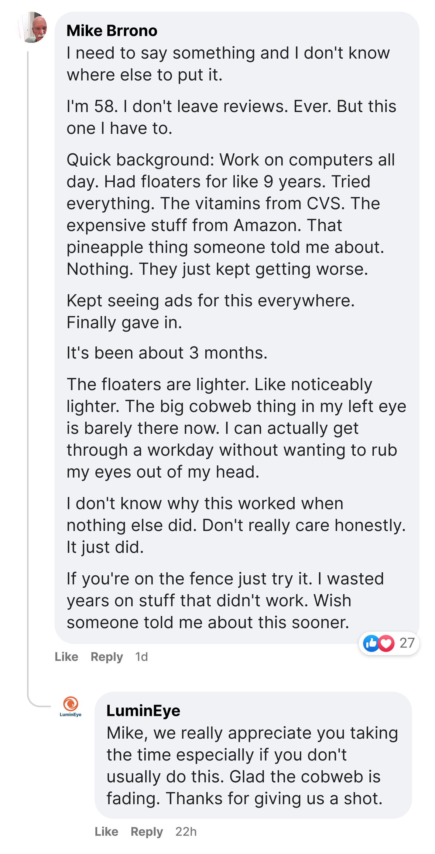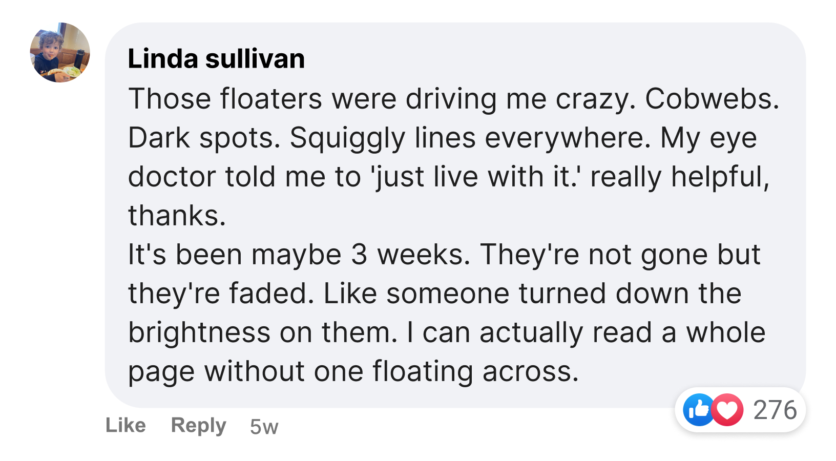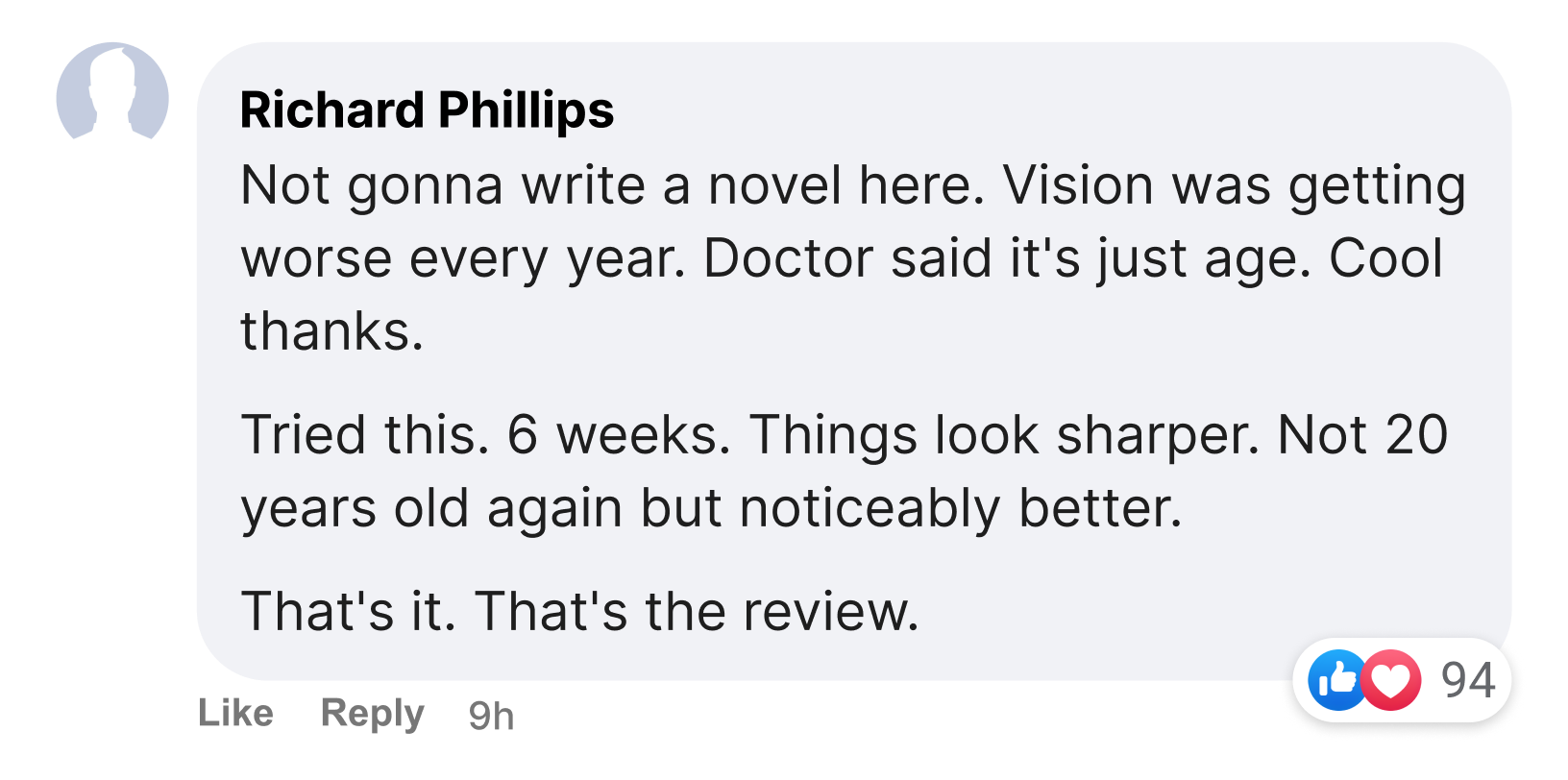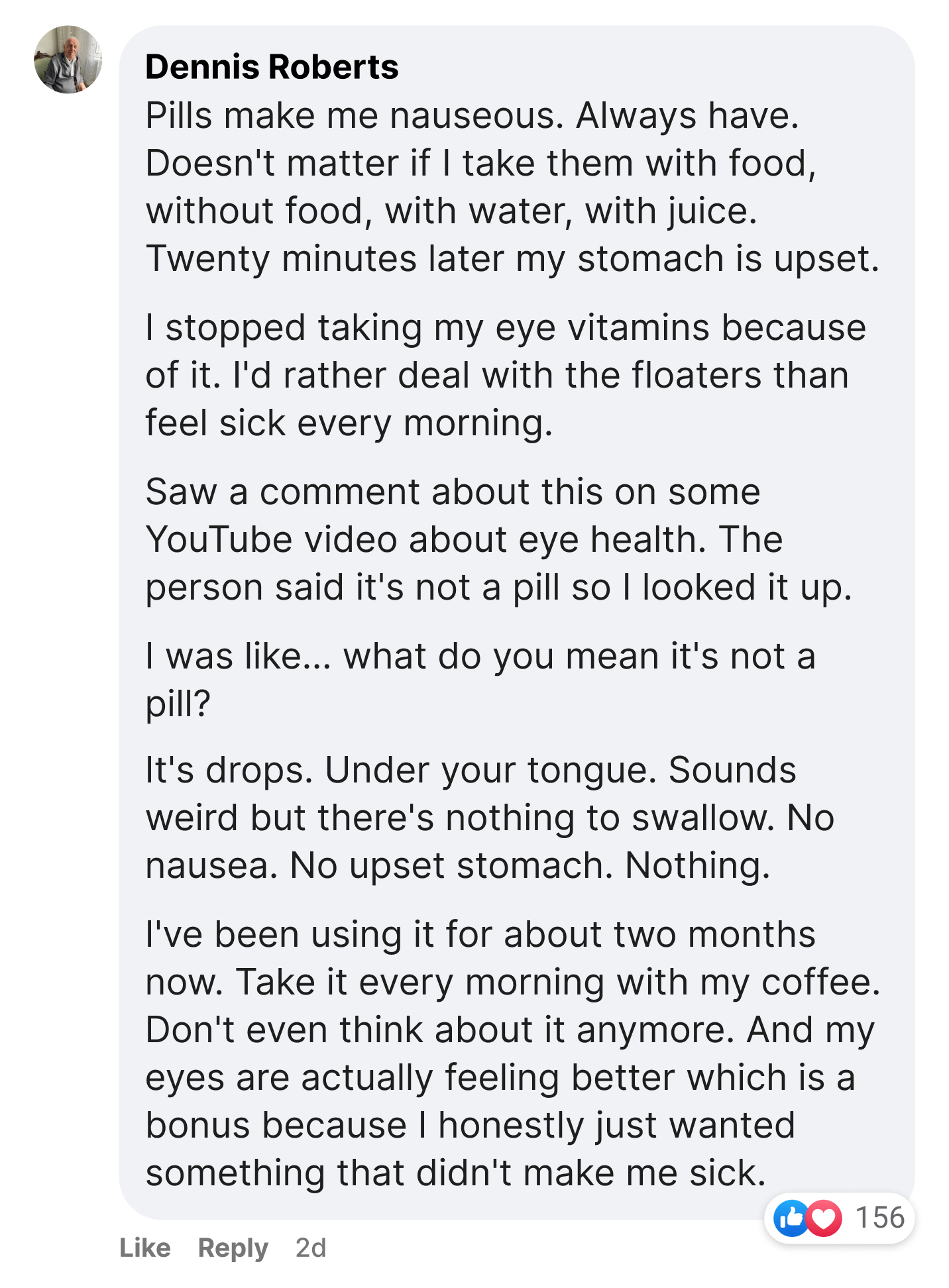 Works even if you've had problems for years (Floaters, blur, dry eyes, night driving issues)
