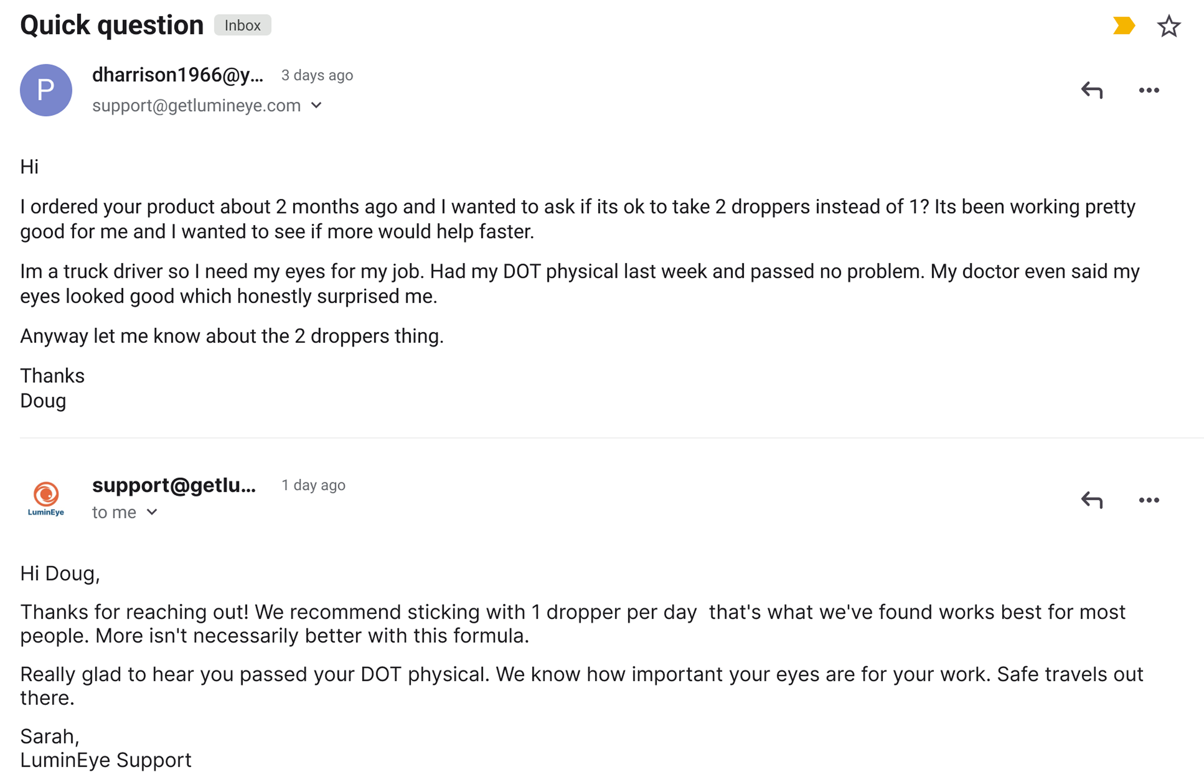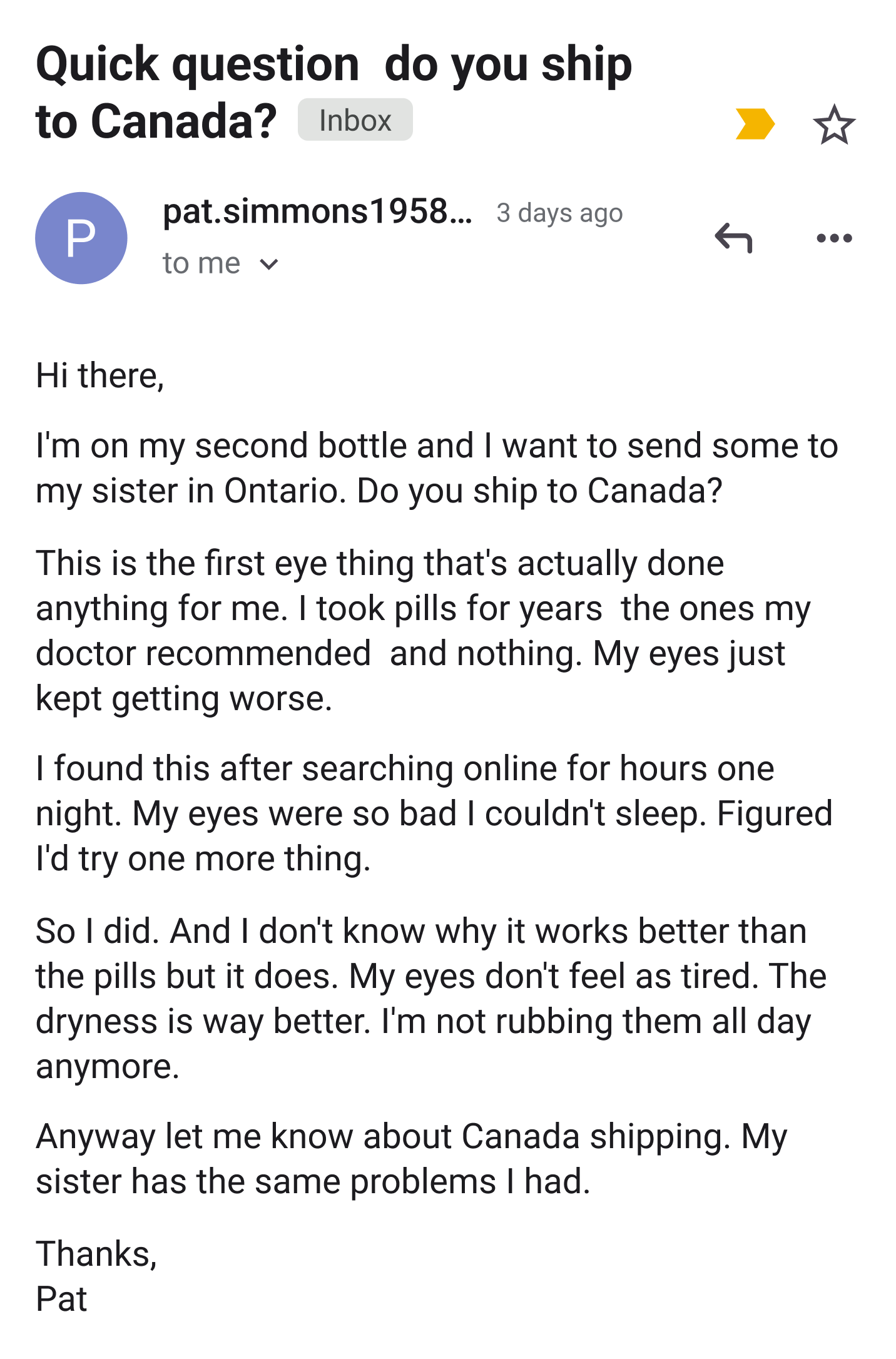 If your eyes don't feel clearer, less tired, or less dry if you're not happy for ANY reason just email us.